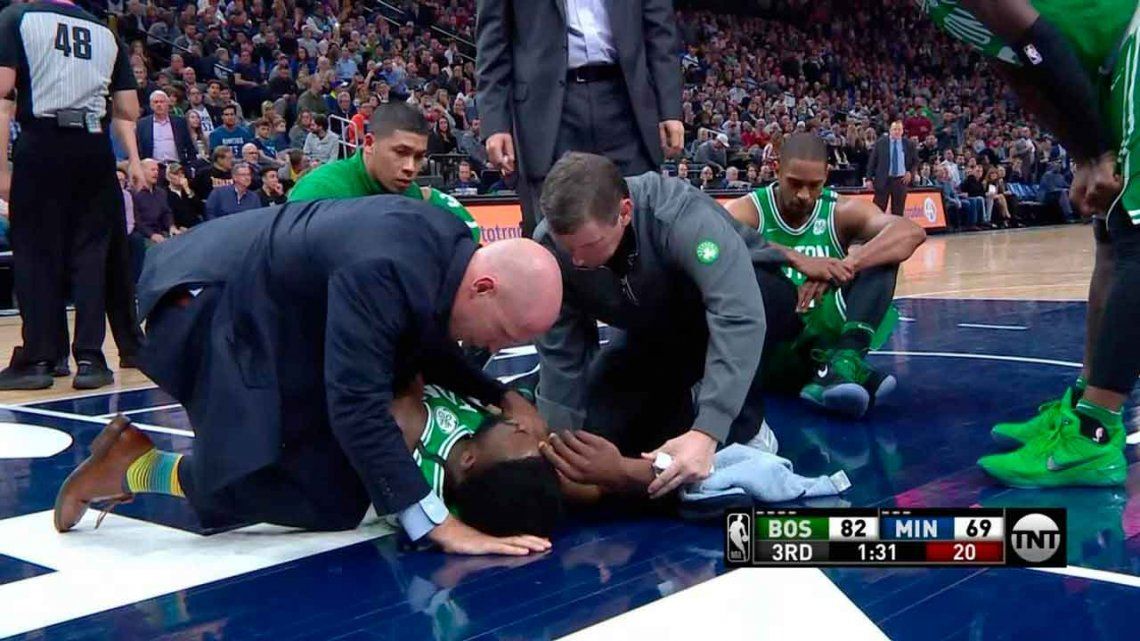 El alero de los Boston Celtics hizo una volcada ante los Minnesota Timberwolves, pero cayó realmente muy mal, generando un verdadero susto entre todos los que se encontraban en el estadio.