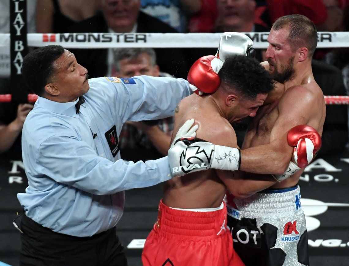 Lo peor fue que sin siquiera darle un minuto de recupero al ruso –las reglas permiten hasta 5 minutos para reponerse de tal acción, caso contrario se pierde por KOT- ni quitarle puntos al campeón, directamente paró la pelea y decretó el KOT a favor de Ward. ¿No podía haber hecho aunque sea una cuenta de protección?