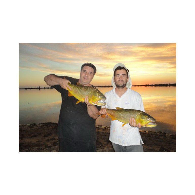 Este pueblito, en rigor apenas un caserío, tiene un camping en donde Marito cruza gente a las islas con su lancha tipo trucker. Así, el grupo cargó los bártulos y abundante provisión de líquido, y en 15 minutos se encontraba en la orilla opuesta en una costa amplia y sin yuyales, ideal para caminarla buscando pique. Marito les había mencionado una salida de aguas negra que resultó muy rendidora a la postre. Así, armaron una carpa con sombra, y todo el grupo se dedicó a tirar señuelos al agua. Los piques no tardaron: los dorados pasaban por rachas y tomaban los señuelos con ganas. Hugo, un debutante en spinning, logró varios ejemplares entre 2 y 4 kilos. Y al final de la jornada redondearon 10 piezas fuera del agua y otros tantos piques errados. La yapa vino al regreso, pues Marito los buscó un rato antes y los invitó a pescar desde la lancha, logrado varios dorados más.