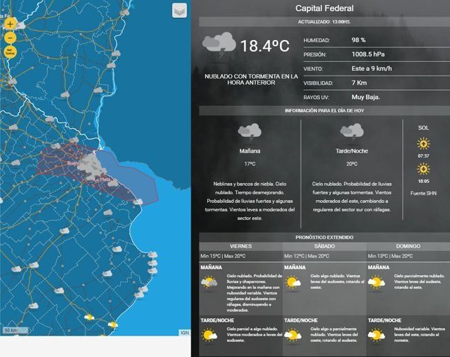 El SMN, prevé un sábado con cielo algo nublado, vientos leves del sudoeste, rotando al oeste y una temperatura que fluctuará entre los 12 y 20 grados.