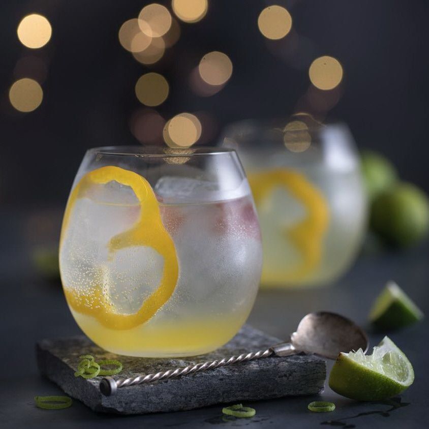 Gin, agua tónica, pimiento amarillo, jugo de lima, almíbar de ananá, flor de pimiento amarillo, hielo.