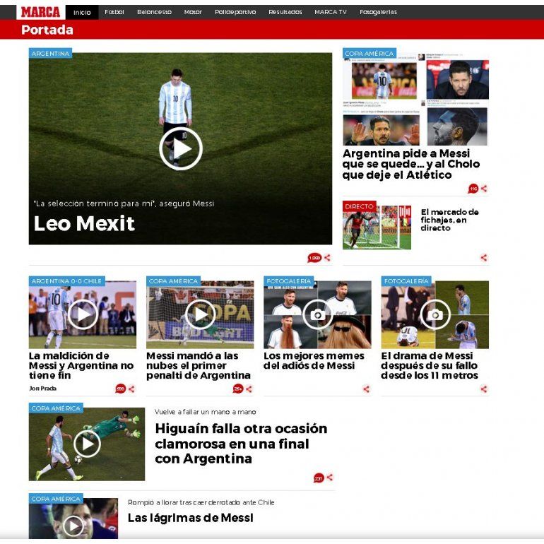 Medios de todo el mundo difundieron la decisión de Lionel Messi de alejarse de la Selección Argentina tras la derrota en su tercera final consecutiva, por segunda vez contra Chile y en una Copa América.