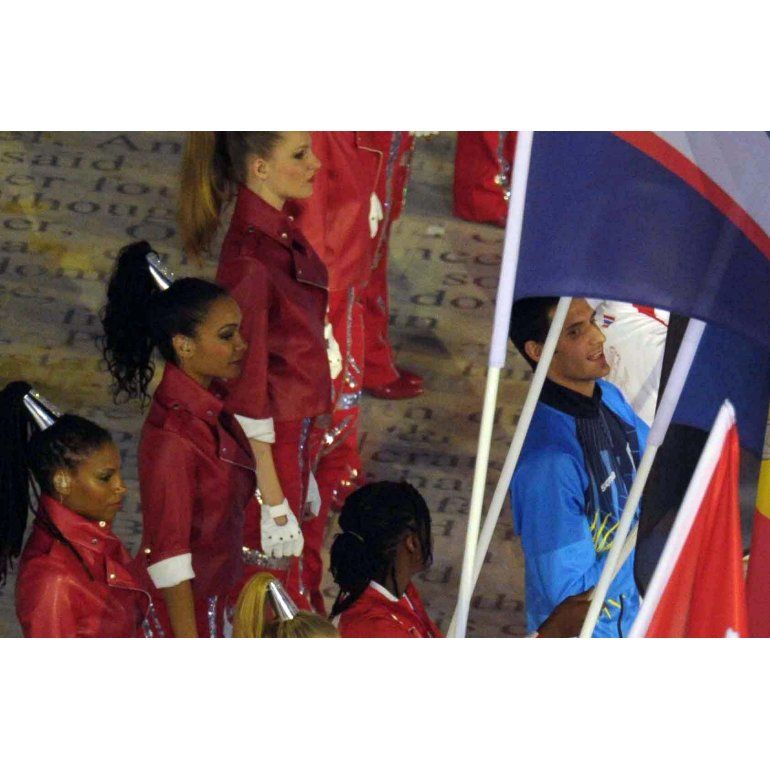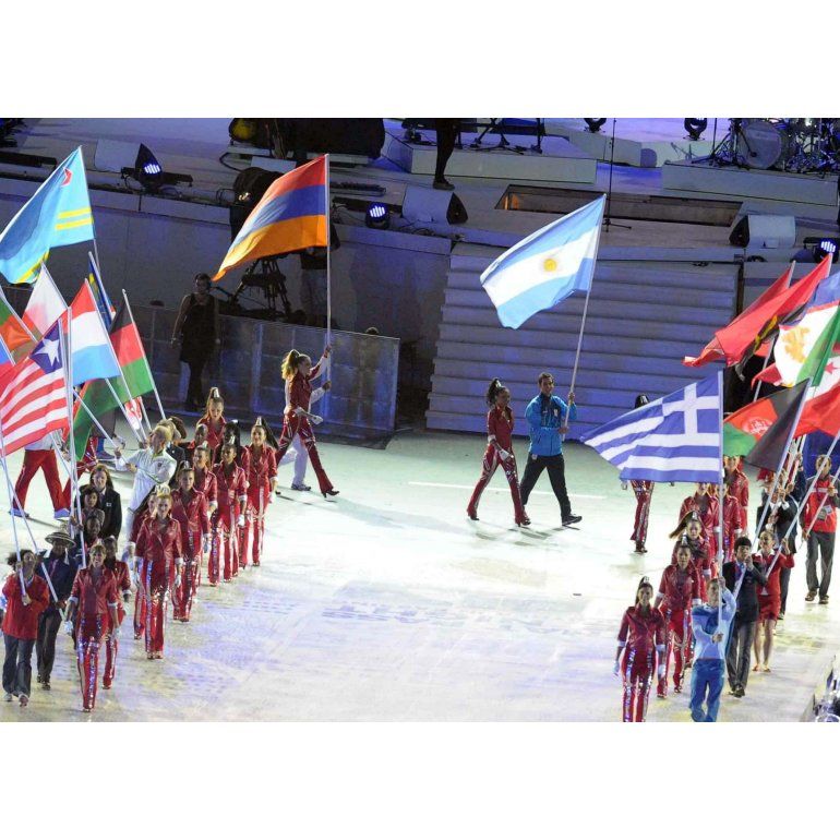 Sebastián Crismanich, único atleta argentino en conseguir una medalla de oro en estos juegos, ingresó al estadio Olímpico de Londres en medio de la ceremonia junto a los demás abanderados, que representaron a las naciones participantes.