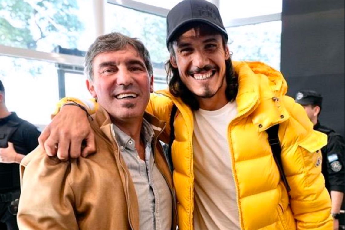 El delantero, que será presentado a las 18 en conferencia de prensa en la mismísima Bombonera, fue recibido nada menos que por su ídolo, Sergio Manteca Martínez, con quien se abrazó y posó para los fotógrafos en la primera postal que les regaló a los Xeneizes.