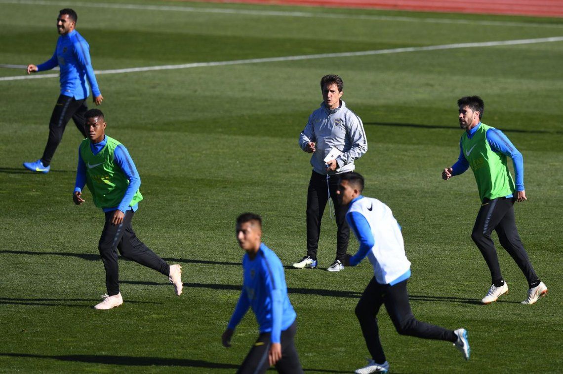 En la mañana madrileña, el Mellizo paró a: Esteban Andrada; Julio Buffarini, Carlos Izquierdoz, Lisandro Magallán y Emmanuel Mas; Cristian Pavón, Wilmar Barrios, Pablo Pérez y Edwin Cardona; Ramón Abila y Darío Benedetto. Mientras que en el otro equipo apostó a estos nombres: Agustín Rossi; Leonardo Jara, Paolo Goltz y Lucas Olaza; Nahitan Nández, Fernando Gago, Agustín Almendra y Sebastián Villa; Cristian Espinoza, Carlos Tévez y Mauro Zárate.