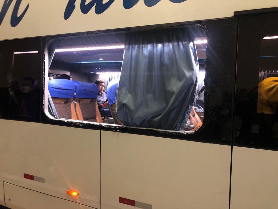 El ómnibus pasó por un lugar donde un grupo de hinchas de Corinthians estaba realizando un banderazo y el impacto del proyectil se dio sobre una de las ventanillas inferiores del transporte.