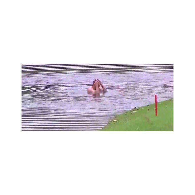 El golfista español Pablo Larrazábal fue atacado por avispas mientras se disponía a jugar en el Abierto de Kuala Lumpur y debió tirarse al lago.