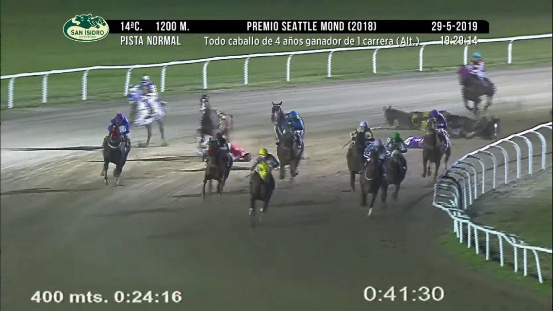 La rodada se produjo cuando los corredores habían pasado los 450 metros y el caballo que montaba Enrique cayó y detrás suyo lo hicieron los de Ricardo, La Palma y Falero.
