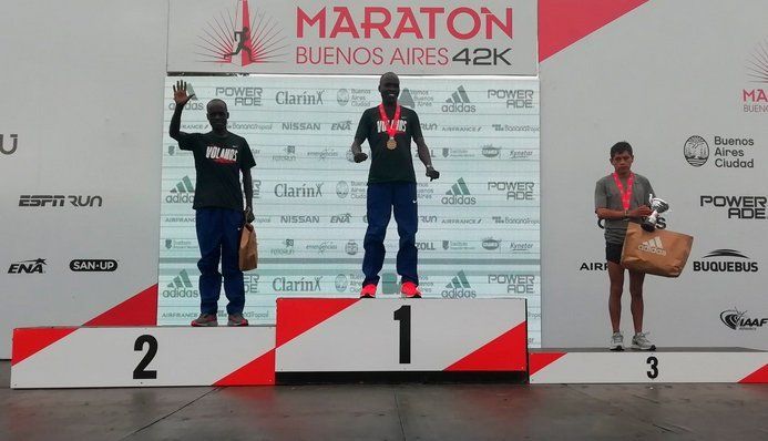 El keniano Saina Kipkemboi sorprendió esta mañana al ganar el maratón de Buenos Aires en el primer gran registro de su trayectoria y donde además estableció una nueva marca para la prueba argentina con 2 horas, 5 minutos y 20 segundos.