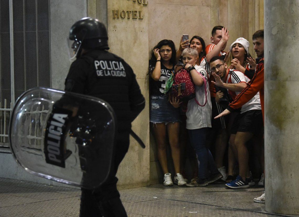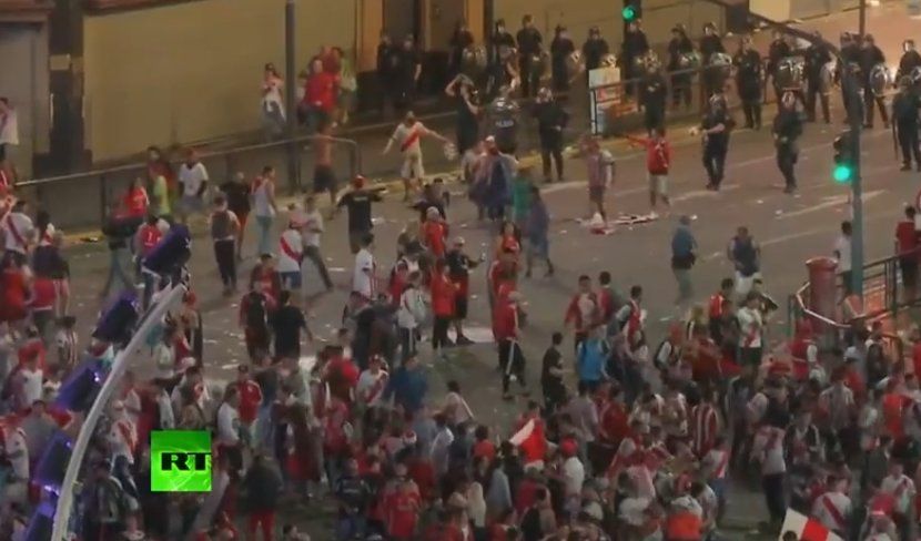 Los festejos en el Obelisco, epicentro de la ciudad de Buenos Aires, terminaron con un tenso cruce entre hinchas de River y la policía que tras recibir algunos piedrazos no tardaron en responder esas agresiones con un aluvión de balas de goma y gases lacrimógenos.