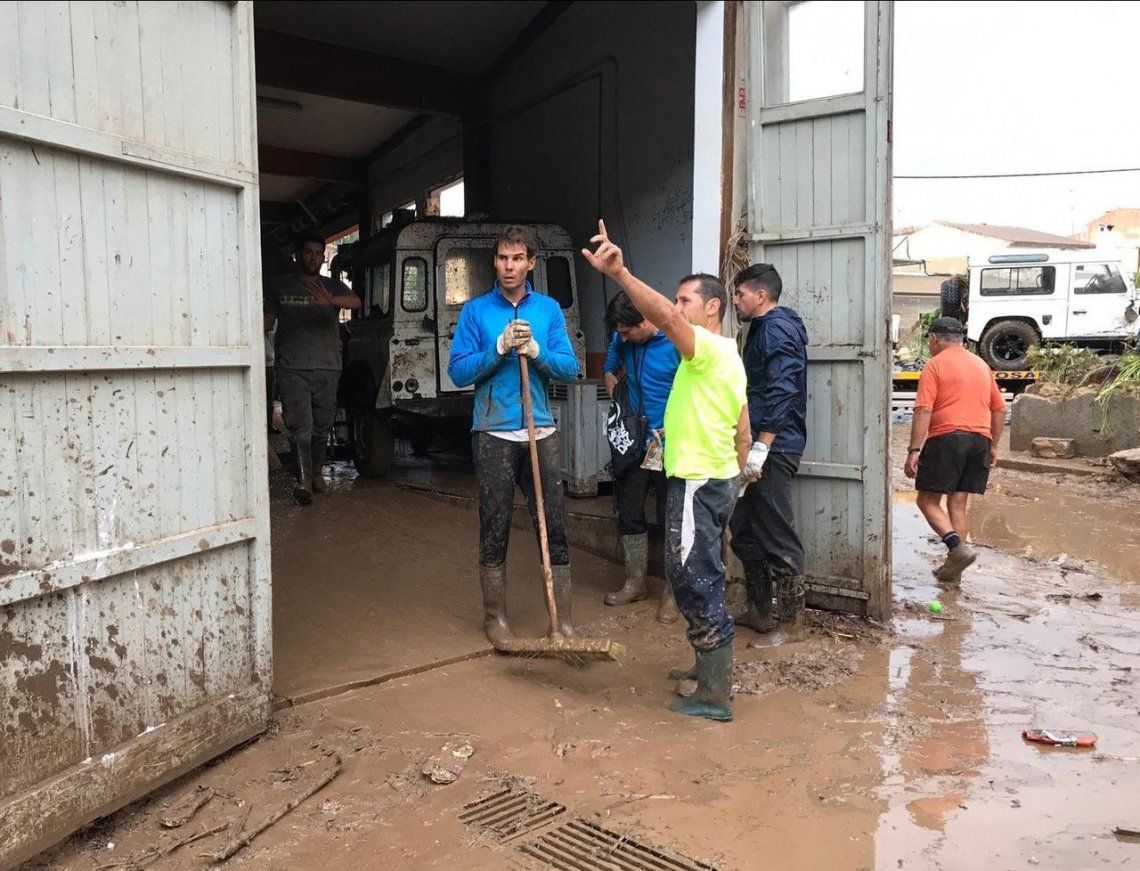 El tenista español Rafael Nadal participó en tareas de socorro para las víctimas de las inundaciones en Mallorca, en donde ofreció las instalaciones de su academia de tenis para ayudar a los damnificados.
