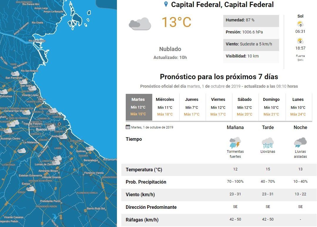Después de la inolvidable final en Madrid en la que el Millo se coronó campeón de América, River y Boca se reencontrarán en la Copa Libertadores este martes 1 de octubre, a las 21.30, en el estadio Monumental; y como el lunes estuvo pasado por agua, uno de los grandes interrogantes en la previa del clásico más importante del mundo es: ¿qué anuncia el servicio meteorológico para el día del Superclásico?