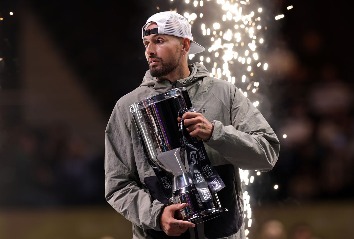 Sabalenka, ganadora de 21 títulos en el circuito WTA, incluidos cuatro Grand Slam -el último, el Abierto de Estados Unidos 2025-, irrumpió en la cancha al ritmo de Eye of the Tiger, en una puesta en escena que reforzó el clima de show. Kyrgios, en cambio, optó por una entrada más sobria, acorde a un partido que, pese a la expectativa, nunca encontró verdadera tensión competitiva.