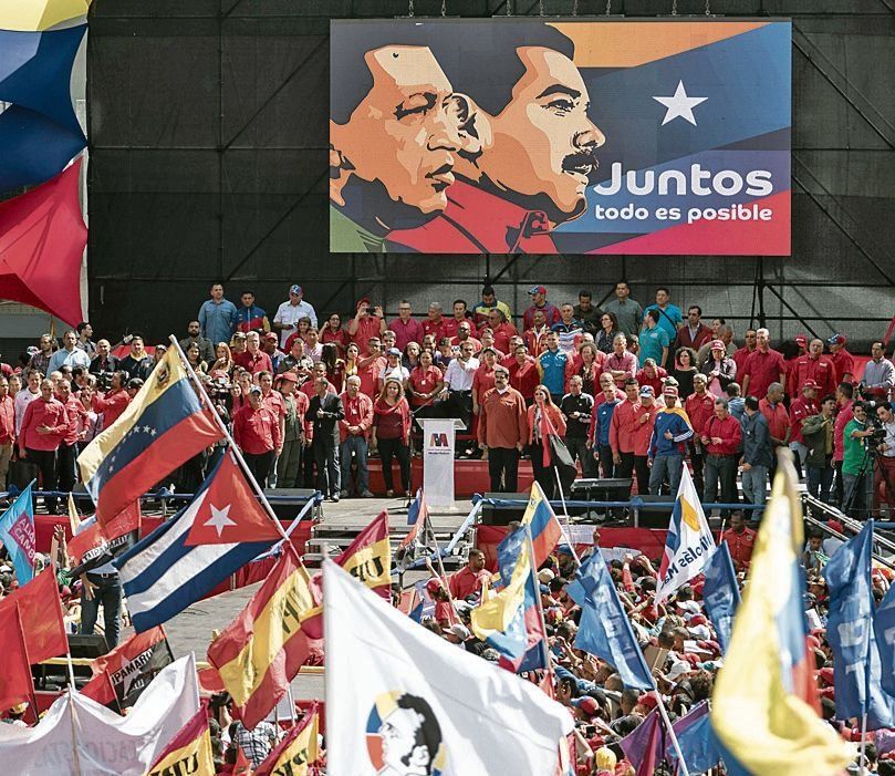 “¡Todos con Maduro, lealtad y futuro!”. Al ritmo de este estribillo el mandatario se paseó con su esposa, Cilia Flores, por una tarima instalada frente a la sede del poder electoral en Caracas.