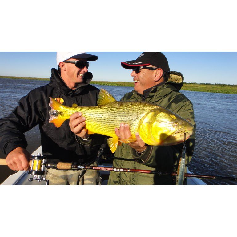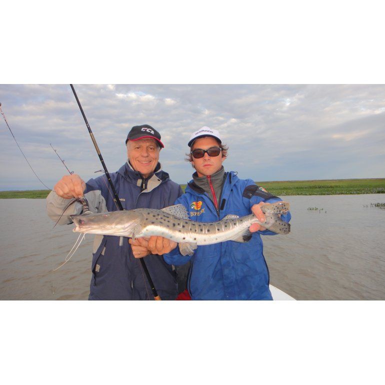 1º día).- Corrientes recibió al grupo de Viva la Pesca, comandado por Gustavo Miranda, con un clima poco usual: mucho frío y bastante viento. Luego de transitar los poco más de 600 km en micro, nos trasladamos al comodísimo hotel que tienen nuestros anfitriones a metros del río. Tras un excelente desayuno, nos alistamos para nuestra primer jornada de pesca. Sólo son imprescindibles caña y reel (aunque también alquilan el equipo). El resto -líderes, anzuelos, líneas, señuelos, plomitos, etc- forma parte del amplísimo espectro de servicios que brinda Matute Pesca, nuestro an trión en esta visita. Dadas las condiciones climáticas, Matías, nuestro guía y an trión, decidió no ir a río abierto, buscando entonces en el vasto delta de Esquina el reparo y las condiciones para lograr capturar al ansiado Pirayú. Y la pesca no se hizo esperar: armamos los equipos consistentes en Cañas Silstar Rooster de 2,10 y Shimano Convergence de 7 pies, conreeles Spinit High Speed cargados con multi lamento Power Pro de 40 libras. Sobre el mismo multi hacemos correr un plomito pasante, líder y anzuelo 9/0 encarnando con morena.