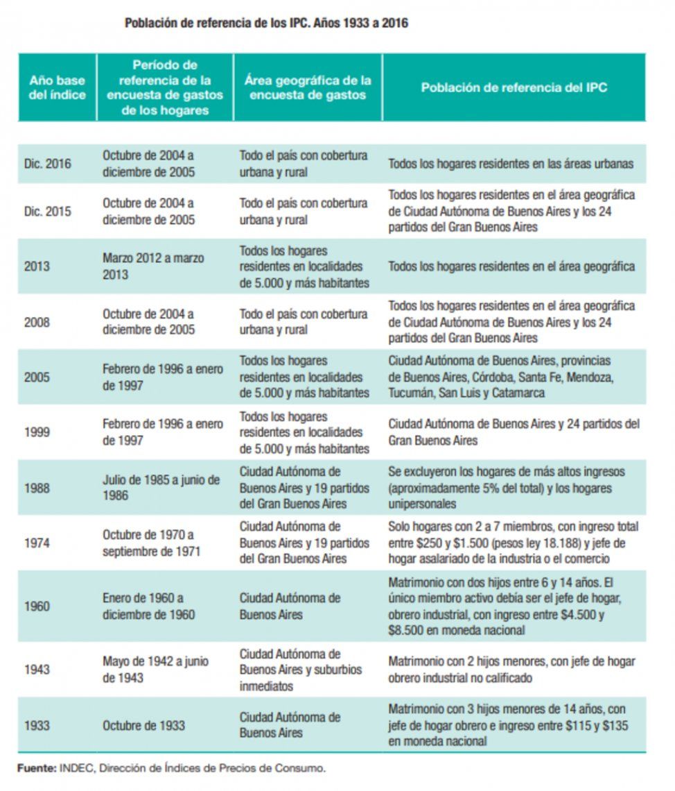 Al respecto, la participación de los servicios en el total de gastos familiares es en la actualidad mayor a lo que era décadas atrás, tanto por el uso de medicina y educación privadas como por los adelantos tecnológicos, que hicieron que en los últimos años cobraran importancia los gastos en conexión de Internet, telefonía celular, televisión por cable, entre otros. Ninguno de esos ítems tenía presencia en las metodología empleadas hace más de treinta años y su incorporación fue gradual en las actualizaciones llevadas a cabo en 1999, 2005, 2008, 2013, 2015 y 2016.