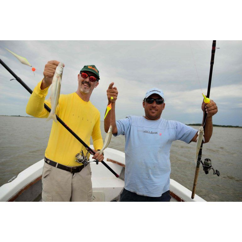 En este contexto de poca presión de pescadores, la laguna ofrece un inmejorable panorama para pescar pejerreyes, a los que obtuvimos en las primeras horas de la mañana gareteando por el centro de la laguna. Tras renegar un rato con los dientudos, encontramos la clave en lograr sólo flechas de plata acortando brazoladas a sólo 10 a 15 cm. Allí, pudimos dar con buenos pejerreyes, hasta en triplete por momentos.