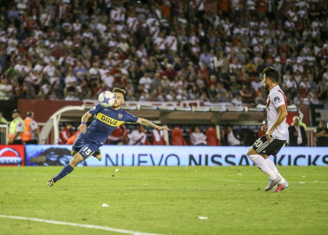 •Paolo Goltz (8) firme despejando de arriba y de abajo. Fue el patrón del área en su primer superclásico oficial. Anticipó y despejó con personalidad.