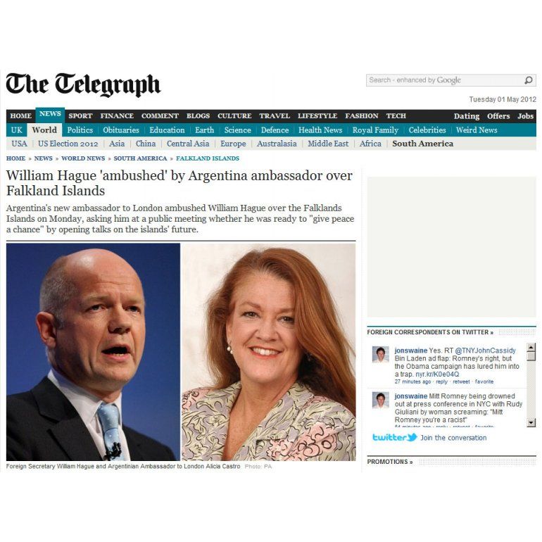 La embajadora argentina en Gran Breteña, Alicia Castro, anunció que presenciará el partido que jugará hoy el seleccionado de hockey, Las Leonas, frente a Holanda, por la medalla dorada de los Juegos Olímpicos Londres 2012.