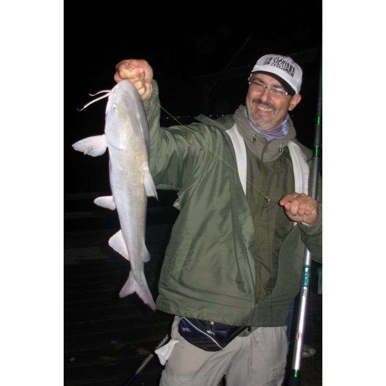 En nuestra visita, arrancamos cerca de las 22 con pique raleado, y las pocas capturas que se daban se lograban, indefectiblemente, entre quienes hacían mejor los deberes. Ya cerca de la medianoche, arrancó una linda racha de piques de bagres de mar y corvinas chicas, pero cerca de las 01 pude cobrar un hermoso bagre de unos 2,5 kilos, al tiempo que otro aficionado que encarnaba con excelentes langostinos enteros, metió una corvina de similar peso, que a la postre, fueron las mejores piezas de la noche, pues luego continuaron los bagres menores, algún chucho, burriquetas y corvinas chicas.