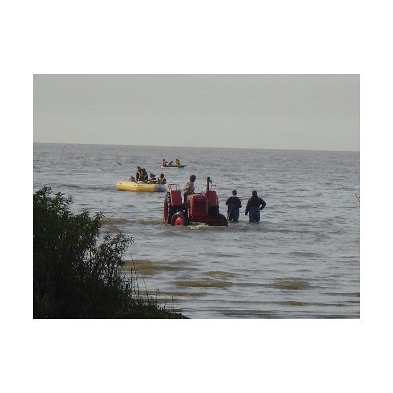Enganchamos el semirrígido y fuimos hasta el río donde Ale, El Alemán, tiene un predio que cuenta con proveeduría y bajada de lanchas con su potente tractor.