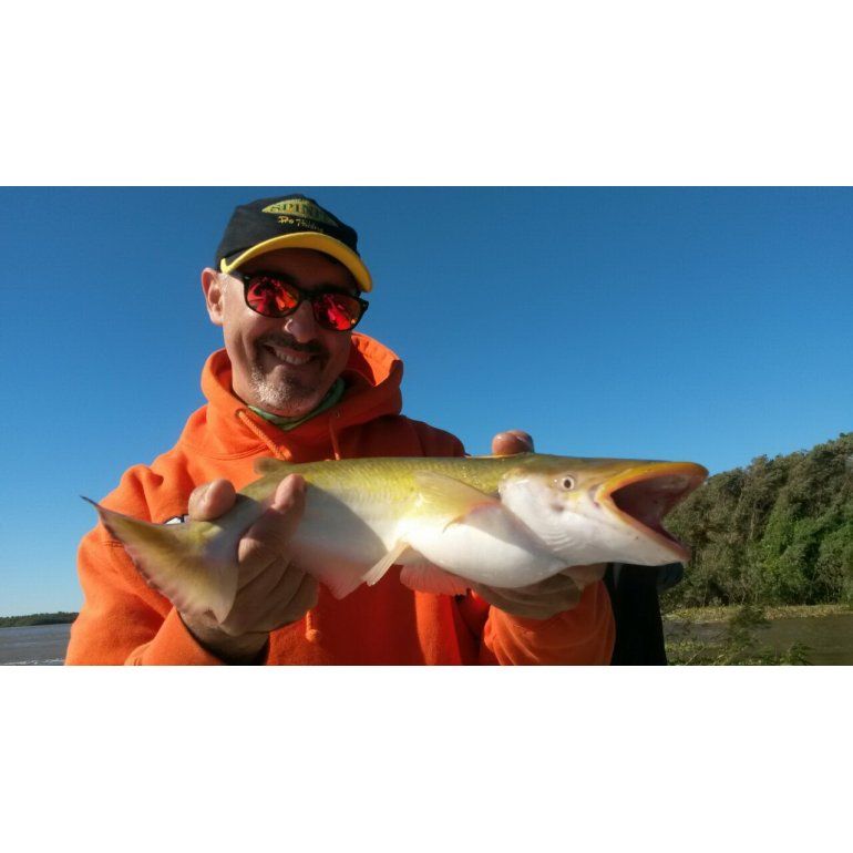 Los piques no tardaron en llegar: uno a uno fuimos izando cachorritos de 2 a 4 kilos, que nos dieron hermosas corridas. Cerca del mediodía, nos pusimos en la punta de un banco a probar suerte anclados. Y allí empezamos a cobrar bravas manduvas y picopatos o cucharones, especie no tan frecuente pero también muy divertida y peleadora.