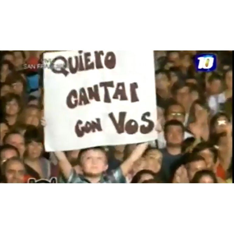 Mientras el cantante presentaba a sus músicos en medio del espectáculo observó al niño que sostenía un cartel con la frase "Quiero cantar con vos" y lo invitó al escenario en el predio de la Sociedad Rural.