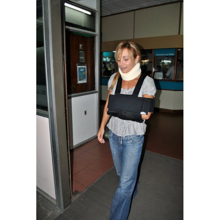 Por primera vez tras su accidente fue vista en público, con cuello ortopédico y el brazo derecho en cabestrillo. La primera vedette de la revista de Carmen y Moria ingresó al centro asistencial por la puerta del sector "Urgencias": le realizaron una tomografía computada y una resonancia magnética, cuyos resultados se sabrán en las próximas horas.