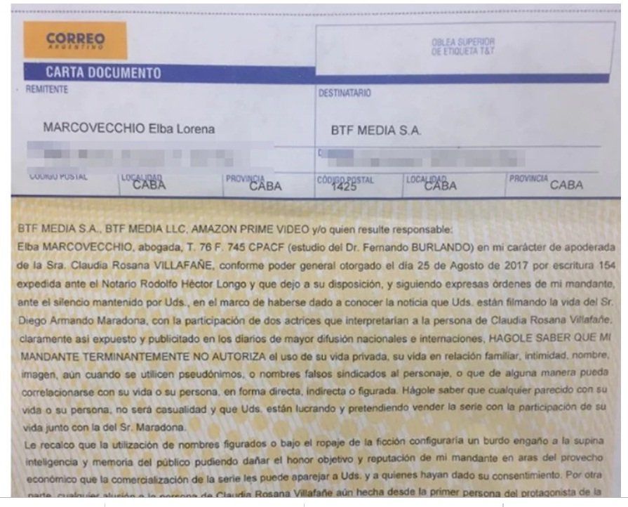 Claro que con una vida tan electrizante, la polémica ya está instalada y la primera carta documento ya fue cursada. Fernando Burlando, el abogado de Claudia Villafañe, mandó una intimación a la productora ya que por lo que trascendió a la ex mujer del Diez no la dejan para nada bien parada.