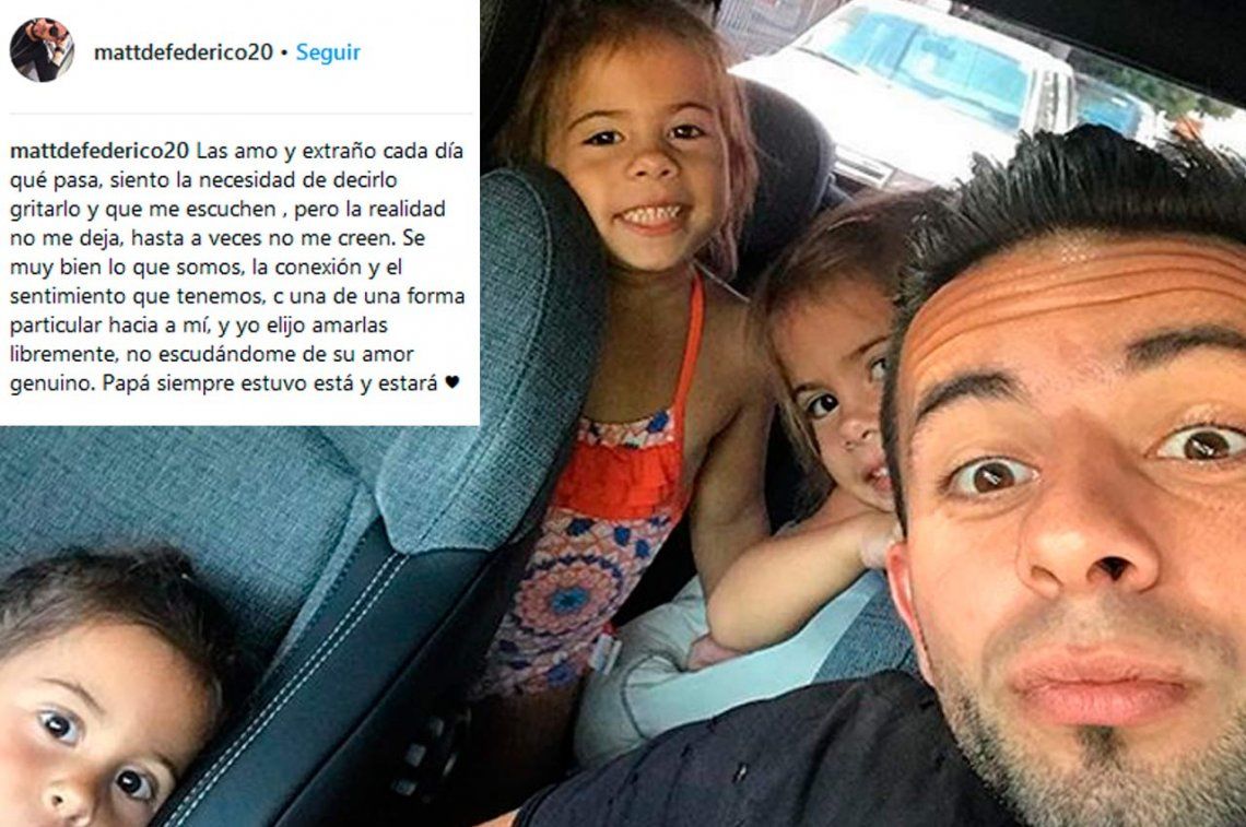 El futbolista Matías Defederico subió a las redes sociales un desolador mensaje en el que aduce que extraña “cada día más” a sus tres hijas Charis, Bella y Francesca, producto de su relación con la modelo Cinthia Fernández, de la que se separó hace un mes.