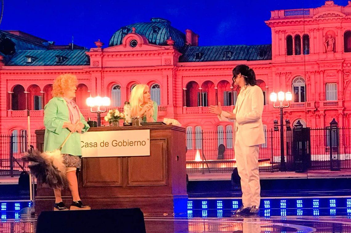 “¿En serio Flora? ¿Hoy viene Michael Jackson?”, dijo “González”, es decir Susana, en el sketch de la empleada pública. Y cuando entró Felipe Pettinato, vestido como su ídolo, la imagen de un Jackson latino se hizo presente en escena. Sorprendió Felipe de entrada diciendo que “Filmé al Presidente haciendo pis. El estaba en un programa, con un conductor... Roberto Pettinato. Fue a orinar y lo filmé. Pero hoy lo borro”.