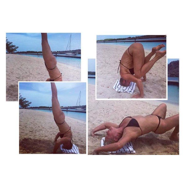 A los 52 años, la rubia sigue siendo un muestrario de calidez y simpatía y no teme reírse de sí misma en su cuenta de Facebook en la que publicó algunas fotos en la que se la ve en bikini y practicando algunas "asanas".