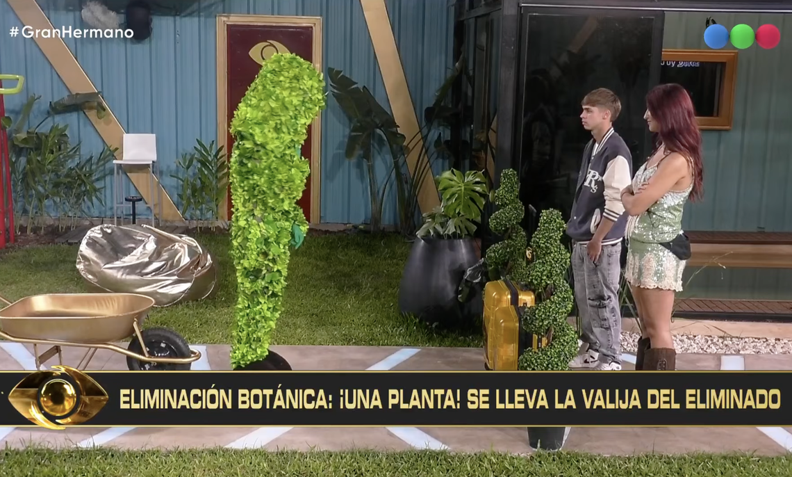 Cuando la planta antropomorfa entró a la casa, dudó unos minutos y luego tomó la valija del joven de 18 años, en ese momento, el participante se enteró que era el final de su participación en el reality, y fue de una manera denigrante.