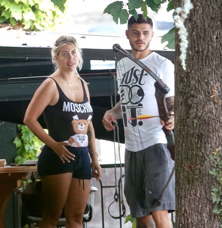 Tal como ocurrió hace unos meses cuando se viralizaron fotos de la pareja en una playa, Wanda no tuvo ningún problema en mostrarse bien al natural y súper relajada se divirtió junto al futbolista con un llamativo arco y flechas.