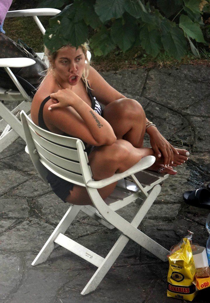 Wanda no tuvo problemas para mostrarse con un look descontracturado: ojotas deportivas, short y una malla enteriza de una reconocida firma italiana y si bien fue retratada por los paparazzis en un momento se dio cuenta pero ni siquiera atinó echarlos.