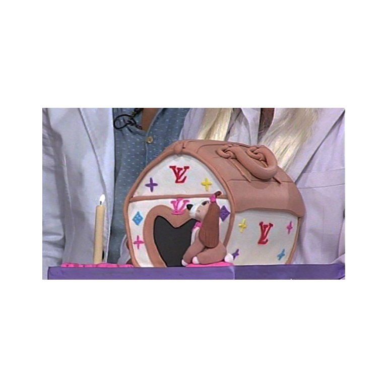 A continuación le cantaron el feliz cumpleaños y le llevaron una torta con forma de cucha de perro –una alusión al amor de Nicole por los animales- con un agregado: la misma tenía un estampado de ¡una cartera de Louis Vuitton!
