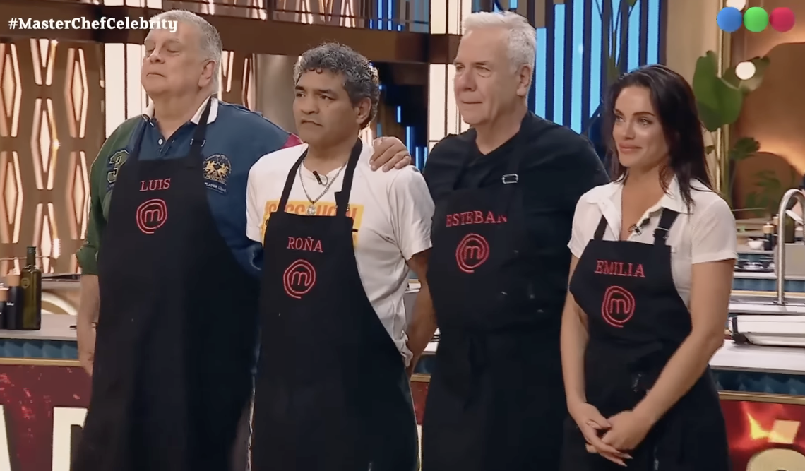 "Quienes se salvan y continúan una semana más en esta competencia son Emilia y Esteban" confirmó el chef repostero y entonces llegó el momento de anunciar quién es el primer participante eliminado de la temporada "El cocinero que abandona las cocinas de Masterchef Celebrity es Roña. Felicitaciones Luis, seguís en competencia".