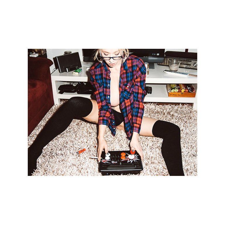 La pechocha tatuada protagonizó una sesión de fotos para la revista Yume en la que se la ve jugando a los videojuegos desnuda, y cubierta tan sólo por una camisa a cuadros.