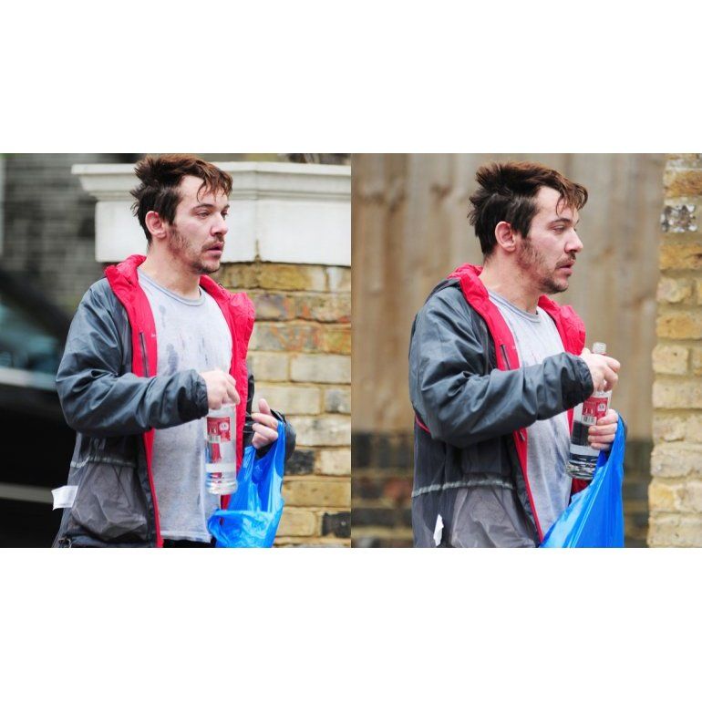 En ellas, el protagonista de Match Point luce desprolijo, con los ojos hinchados, sucio y con una botella de vodka en la mano.
