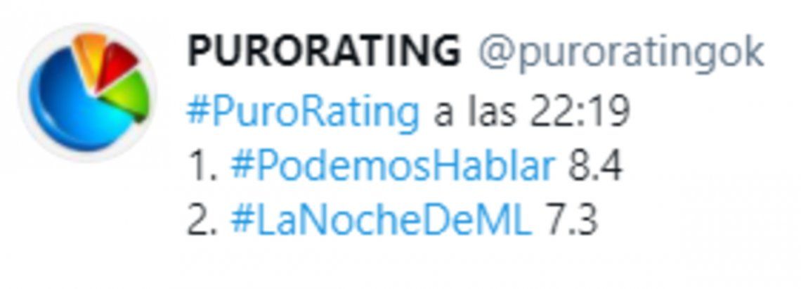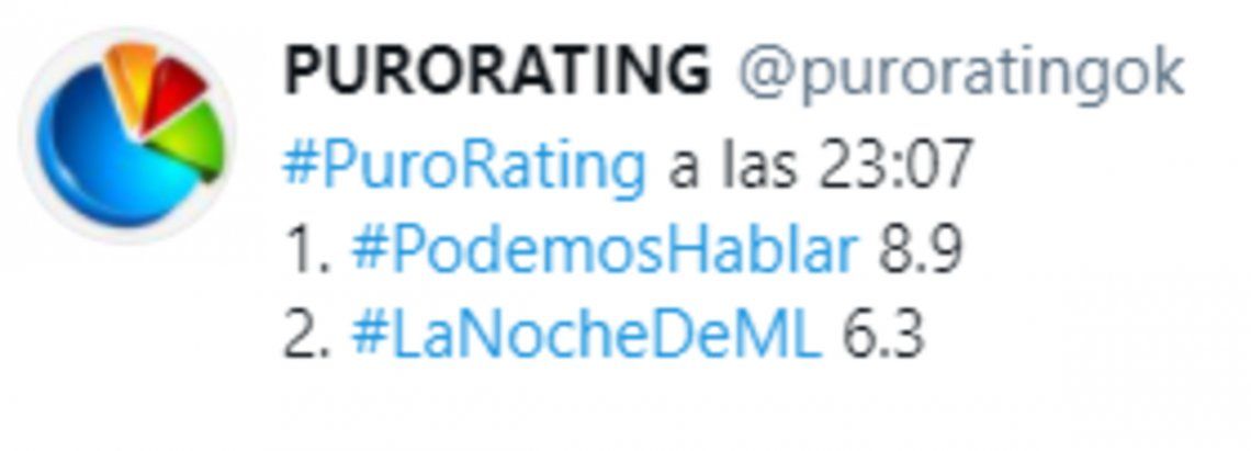 Como ya suele ocurrir hace varias semanas, Podemos hablar tomó la delantera desde el inicio, a pesar de comenzar media hora después que La noche de Mirtha. La razón siempre es la misma, el arrastre que le deja “Moisés” al programa de Andy. De tal manera que a los 19 minutos de haber comenzado ya ganaba la pulseada del rating por 8,4 puntos a 7,3.