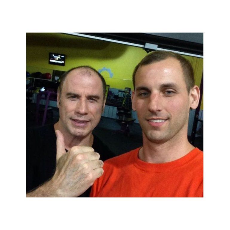 En la imagen, tomada dentro de un gimnasio, se puede observar la avanzada calvicie que agobia a la estrella de "Saturday Night Fever" y sorprendió a más de uno.