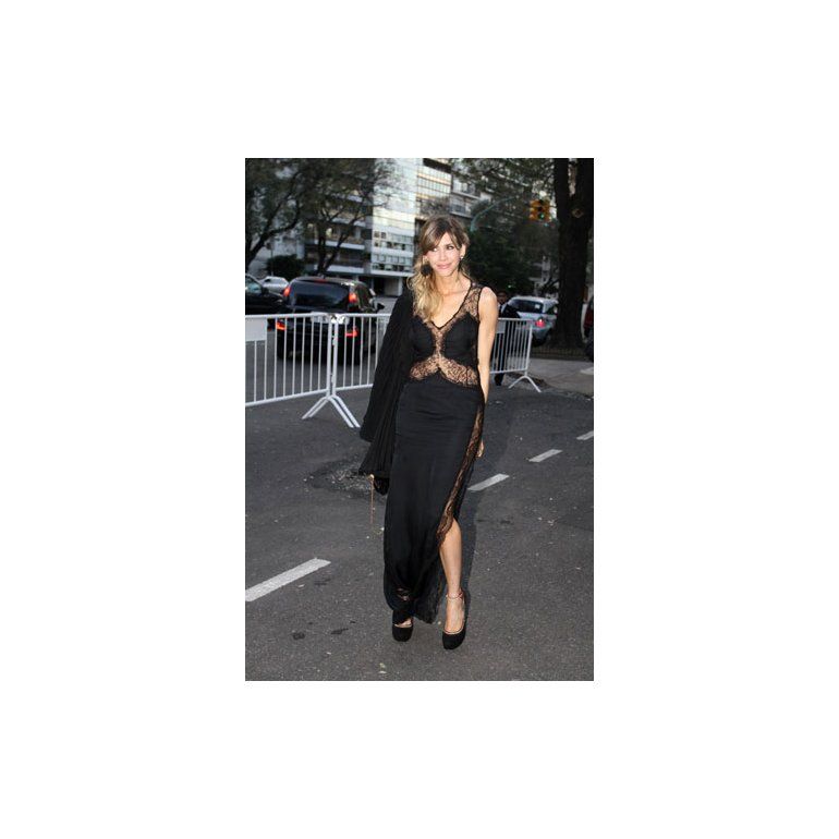 Sin la compañía de Tinelli, Guillermina asistió acompañada de Fabián Paz, su socio en la línea de zapatos que lanzarán juntos en el mercado. La rubia sorprendió con un vestido negro muy sexy, con transparencias.