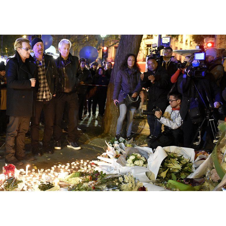 U2 confirmó la suspensión de las dos actuaciones en París, para las que ya se habían desplazado a la capital francesa, por lo que decidieron acudir a la sala Bataclan, donde murió la mayoría de las víctimas, para rendir un pequeño homenaje.