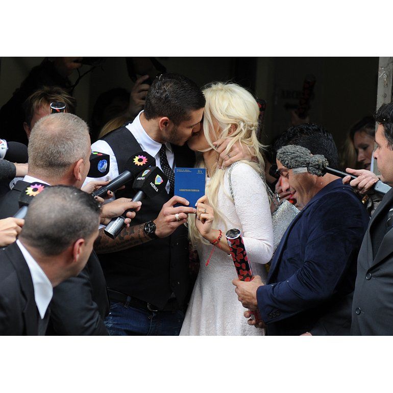 En medio de una guerra mediática contra su ex marido, Maxi López, en la que trascendieron unas virulentas escuchas telefónicas, la rubia y el delantero dieron el sí frente a la ley