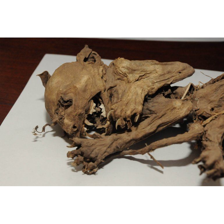 Mientras algunos dicen que se trata de un pequeño chupacabras, otros aseguran que es el esqueleto de una comadreja o de un murciélago sin alas, aunque su fisonomía no responde para nada a un animal de esas características y más bien remite a uno de esos monstruos escapados de una película de terror.