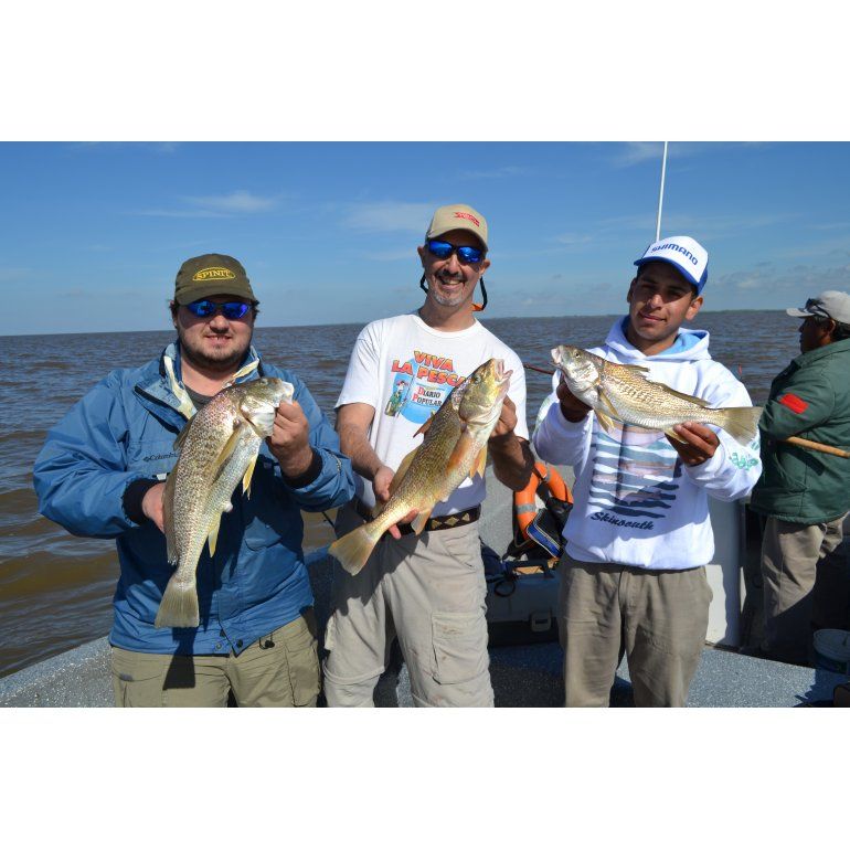 Finalmente, Joaquín nos propuso una jugada de riesgo: ir a una zona cercana a Atalaya, con fondo de barro, en donde prometía pescar menos corvinas, pero mejores. Y así lo hicimos, navegando 20 minutos más, hasta anclar sobre un fondo barroso donde iniciamos los intentos con nuestras cañas Shimano Voltaeus y Tech Tomahawk, y nuestros reeles Tech Luxor y Shimano Caius, ambos de bait. Como prometió el guía, los piques no eran tan intensos, pero las corvinas eran mejores, todas de más de un kilo y con un máximo de dos. Fue una racha muy fructífera hasta que decidimos volver, con medio cajón de lindas piezas.