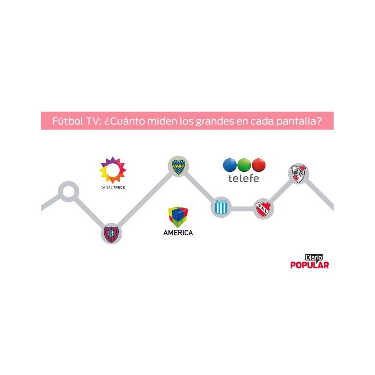 River, Boca, San Lorenzo, Racing e Independiente van exclusivamente por esos tres canales. Rotan por esas señales. Son productos similares —o idénticos— que miden distinto, como si hubiese otros factores que influyan a la hora de mirar un partido, más allá de los equipos que están en cancha. Canal 13 acumula 13.9 cada vez que los pasa. Telefé corre de atrás, con 11.8. Y América está a 500.000 personas de la emisora del Grupo Clarín: promedia, solamente, 9.1. Es decir: los televidentes eligen mirar por Canal 13 y Telefé, antes de América, que tiene 3 puntos menos de rating.