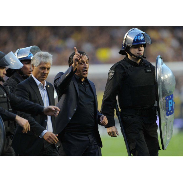 Escoltado por la policía, el "Pelado" tomó aire y se predispuso a cruzar el campo de juego de la Bombonera. Al llevar al túnel, Díaz escuchó que la "12" le cantaba: "Vos sos de la B". El estratega se rio, miró a la gente y, con gestos, dejó en claro que él no tuvo nada que ver con el descenso millonario.