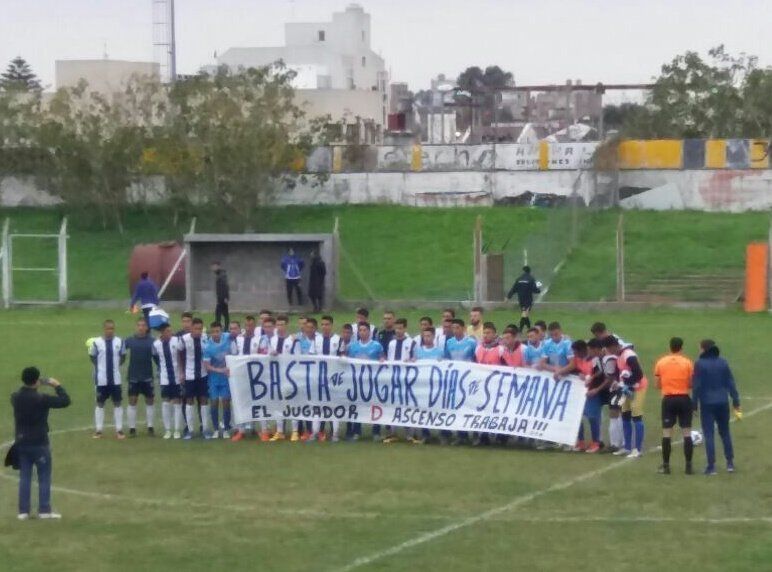 Antes del encuentro entre Centro Español y Liniers, los jugadores se quejaron por el día y el horario del partido. "Basta de jugar en la semana, el jugador de ascenso trabaja", decía una bandera.