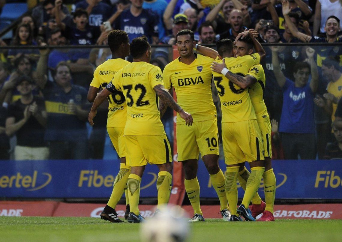 Carlos Tevez, a los tres minutos del primer tiempo, en una jugada en la que previamente el colombiano Edwin Cardona estaba un paso adelantado, Cristian Pavón, a los 8 de la misma etapa, y Nahitan Nández y Ramón Ábila, a los 22 y 43 del segundo tiempo, convirtieron para el elenco boquense.
